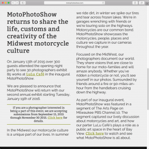 This is was custom website to promote the annual Midwestern motorcycle photography exhibit, MotoPhotoShow.