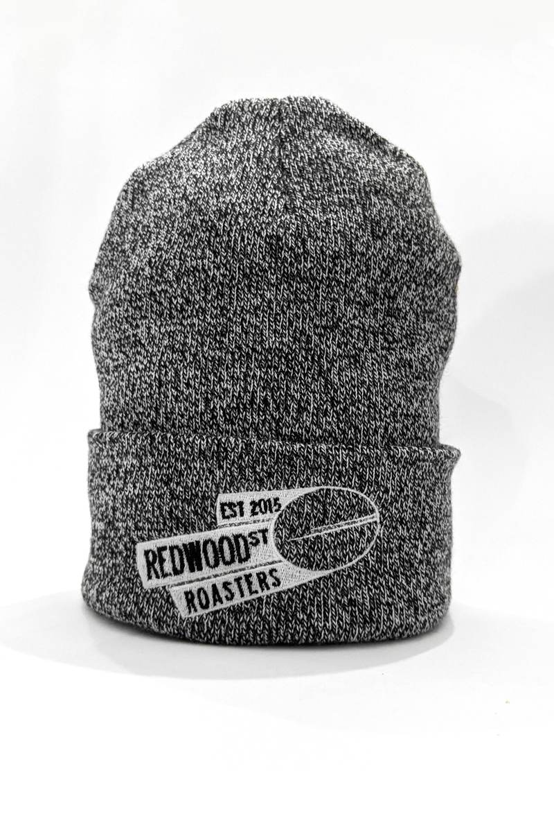 Ribbed knit cap features a marled acrylic yarn cuff and crown.
